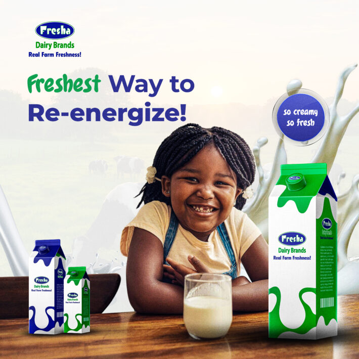 A vibrant and inviting ad design for Fresha Dairy Brands, promoting farm-fresh dairy products with an emphasis on natural quality and creamy texture. The visual style combines appetizing imagery with clean, reassuring typography to communicate purity, energy, and freshness in a competitive consumer market. Client Fresha Dairy Brands Service Ad Design Year 2025